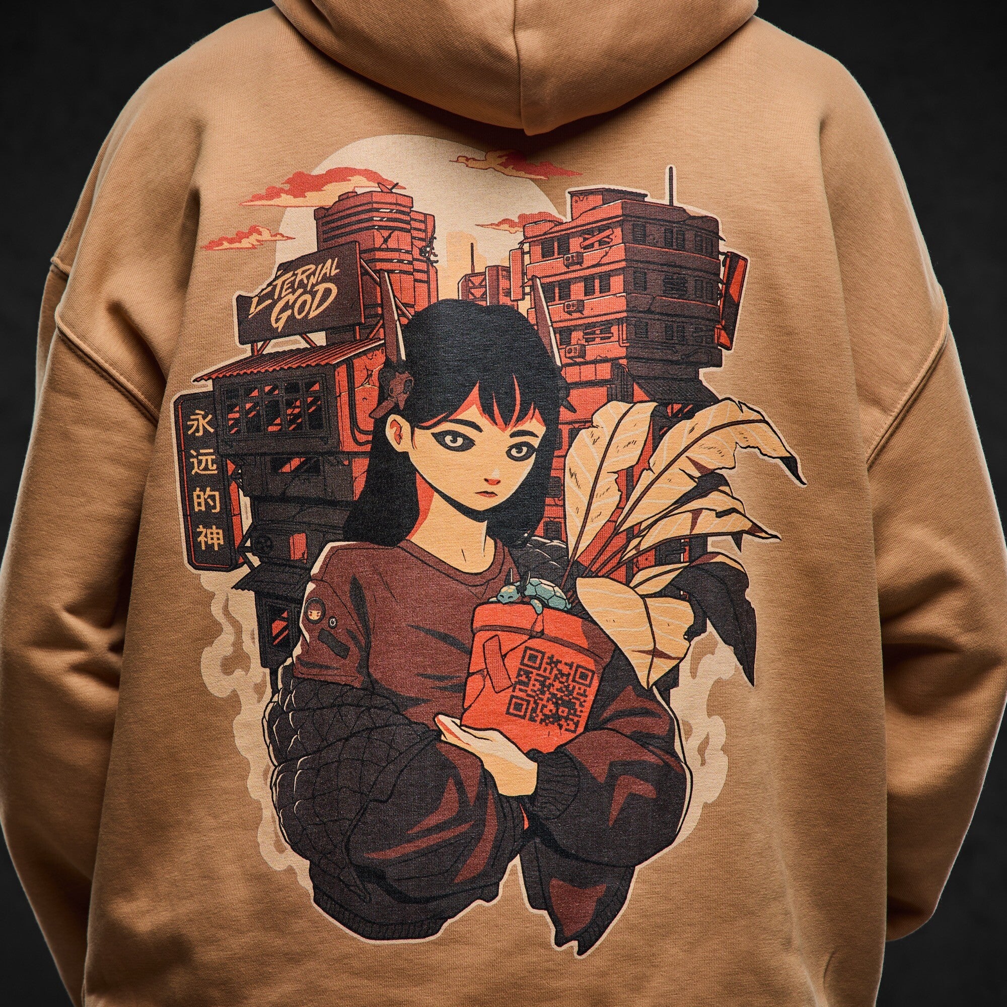 Das perfekte Sommer Piece: der Eternal God "Auroa Dystopia" Unisex Hoodie im Macchiato Colorway.