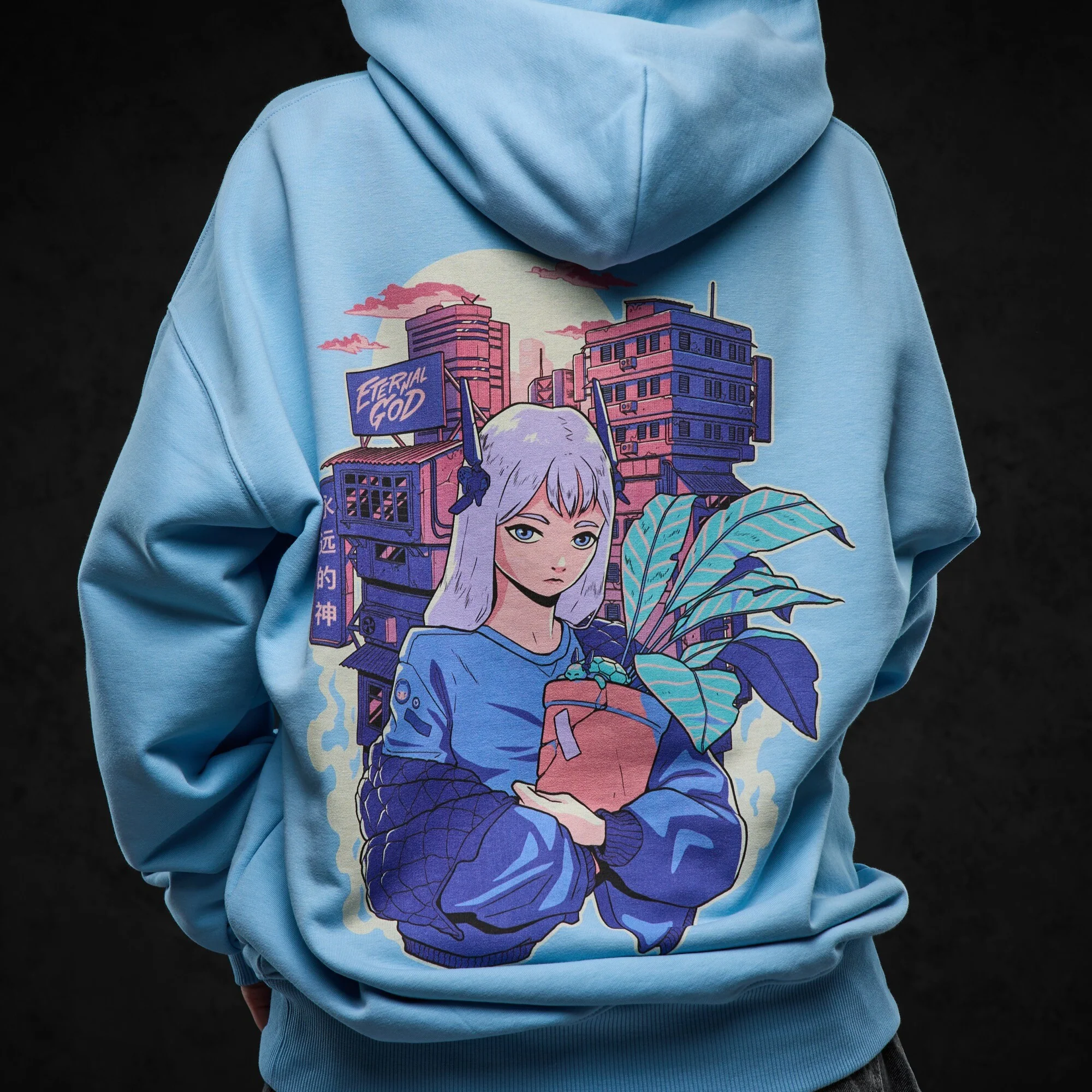 Das perfekte Sommer Piece: der Eternal God "Aurora Utopia" Unisex Hoodie im Airy Blue Colorway.