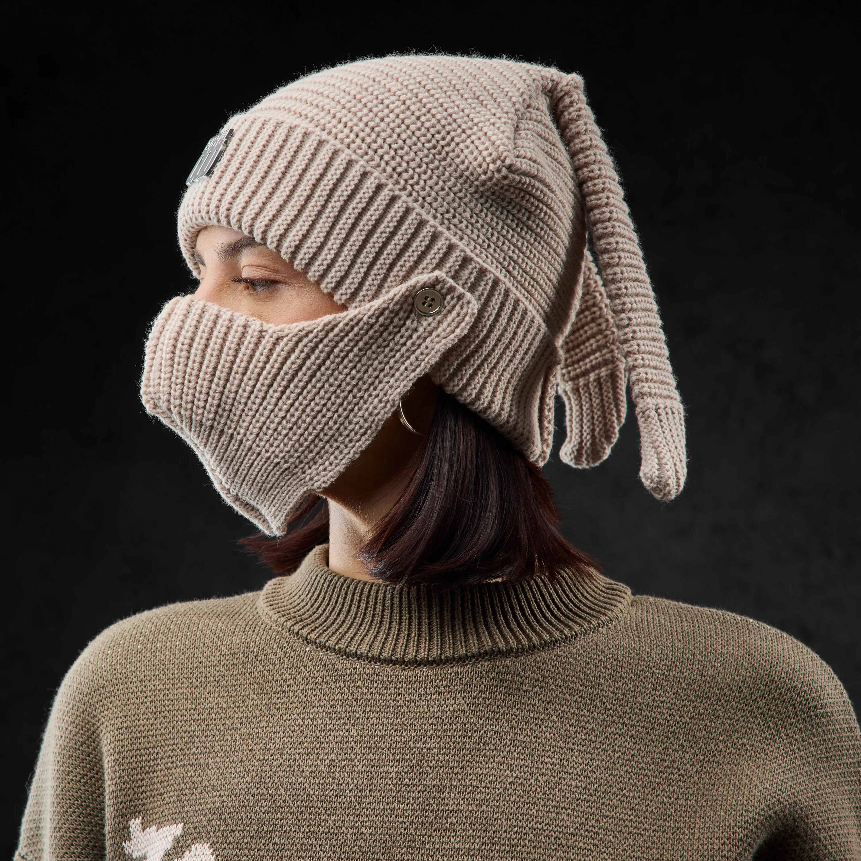 Kuschelige Bunny Balaclava in Beige.