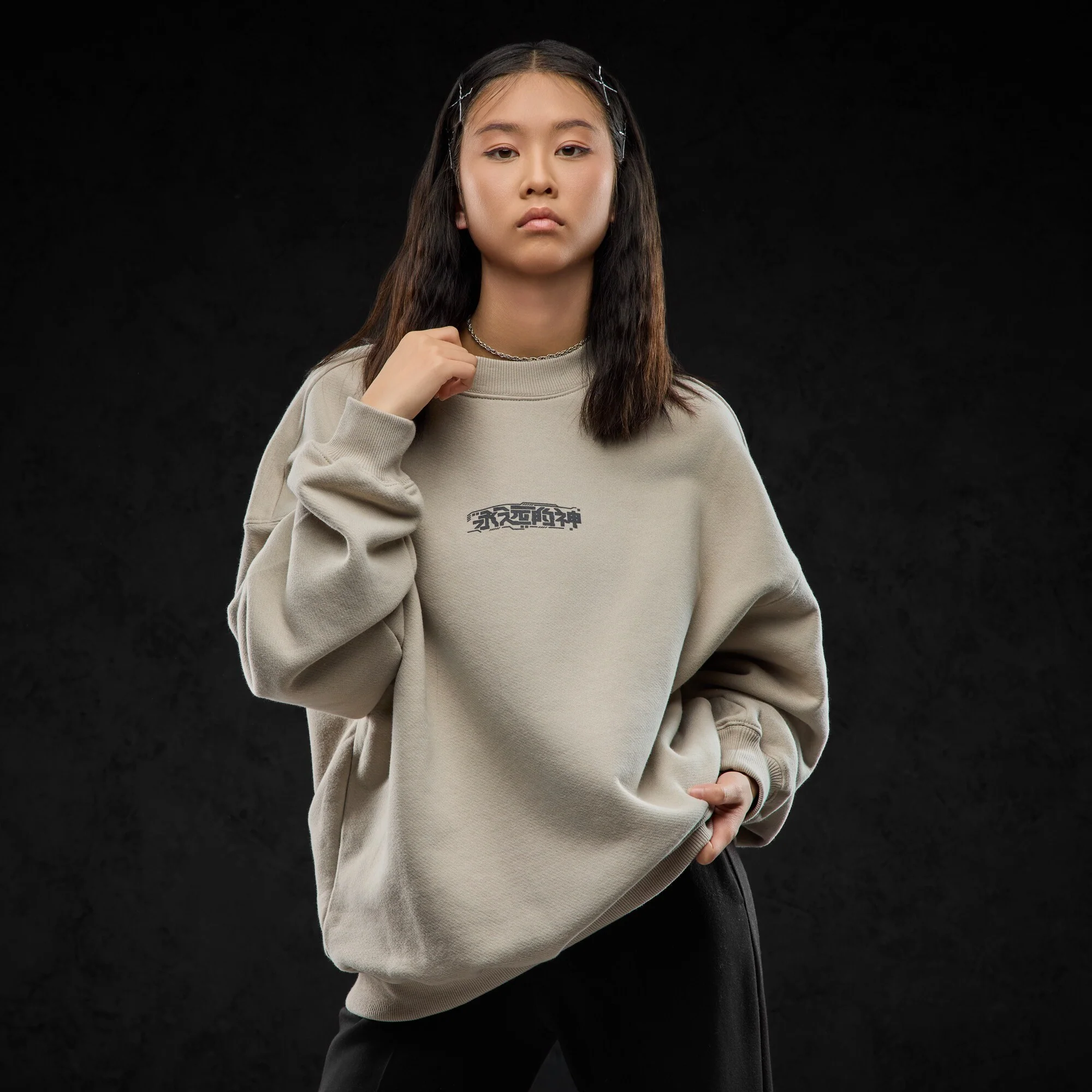 Eternal God "Knox (peached)" Unisex Sweater in Beige mit Druck vorne und hinten.